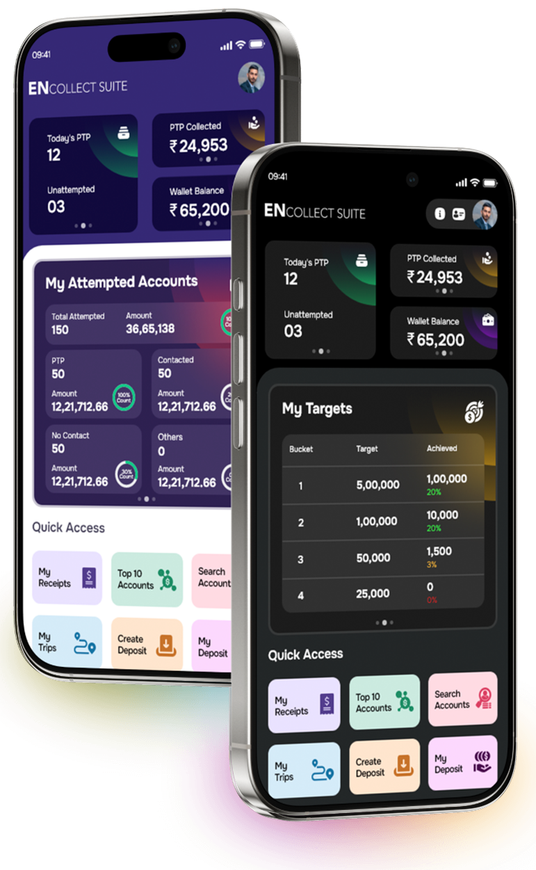 Built for collectors on the move, ENCollect Pro is sleek, beautiful, and a joy to use. Create your own workspace, get smart nudges that guide your day. No clutter, no confusion. Just one app that helps you beat your targets, one day at a time.